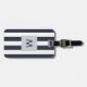 Elegantes blaues Weiß Stripes Monogramm Gepäckanhänger