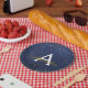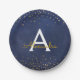 Elegantes Blue and Gold Foil Confetti Monogram Pappteller