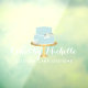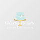 Auf einem goldfarbenen Imitat steht ein mit weißen Blume geschmückter, pastellblauer Kuchen, der eine wunderschöne Ästhetik auf dem Dekor der Bäckerei oder des Tortendekorators verleiht. Aktualisieren Sie den kalligrafischen Text mit Ihrem Namen oder Firmennamen für ein Sofortlogo. Kunst und Design © 1201AM Design Studio | www.1201am.com