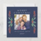 Elegante Blue Christmas Greenery Foto Holiday Card.