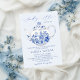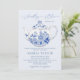 Elegantes Blue Floral Toile Brautparty Einladung