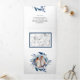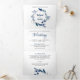 Elegantes Blue Floral Wreath Foto Hochzeit Dreifach Gefaltete Einladung