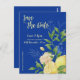 Elegantes Blue Flowers & Lemon Theme Save the Date Postkarte
