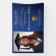 Dieses Abschluss Banner hat einen tiefblauen, texturierten Hintergrund und eleganten Weiß- oder Silbertext. Das Banner ermöglicht eine individuell anpassbare Namenszeile, den Namen der Universitätsbesuchenden und ein Foto.