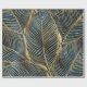 Elegantes Blue Gold Leaf Design Geschenkpapier