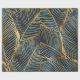 Moderne, in Blau und Gold zeichnend Blätter, perfekt für exotische Stilvolle Wohngestaltung, einmalige Glasveranstaltungen und besondere Feiern. Mit schimmernden Imitaten vergoldeten Glitzer funkelnde Pflanze Blätter handgezeichnete tropische Design, die Schaffung eines außergewöhnlichen goldenen Foliage Muster phantastischen tropischen Kunstwerk, über einen trendigen Samt Luxus-Look marineblau.