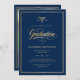 Elegantes Blue Gold Uni-Abschluß Party Einladung