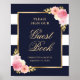 Dieses elegante blau-weiß gestreifte Blumenschild lädt Hochzeitsgäste ein, Ihr Gästebuch zu unterschreiben. Dieses Gästebuchschild mit den farbenfrohen, rosa Blume und goldfarbenem Grün wird durch passende Elemente ergänzt.