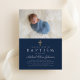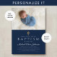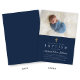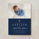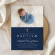 Personalisiertes elegantes Navy Blue Religious Cross Boy Taufe Foto Einladung.