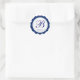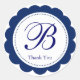 Elegantes Blue Scalloped Monogram Runder Aufkleber