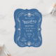 Elegantes Blue & Silver Wreath Monochromatic Weddi Einladung