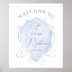 Elegantes Blue Watercolor Wappen Taufe Willkommen Poster