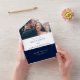 Erleben Sie moderne Eleganz mit dem eleganten Blue White Blume Monogram Foto Wedding All-in-One Einladung mit fett blauen Blumen und einem minimalistischen Monogramm. Dieses All-in-One-Design enthält einen UAWG QR-Code für den Komfort der Gäste, der Stil und Funktionalität mühelos kombiniert. Diese Einladung ist perfekt für das zeitgenössische Ehepaar und Set den Ton für eine nahtlose und schicke Hochzeitsfeier.