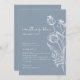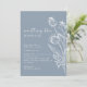 Eine elegante, blaue Einladung für Ihr Brautparty mit einem Line Art Blumenarrangement mit dem Zitat JEMAND BLUE BEVOR ICH TUN. Personalisieren Sie alle wichtigen Details, wie z.B. den Namen der Braut, das Duschdatum, den Standort und die Registrierungsdaten.