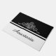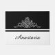 Elegantes Blumendesign mit Namensgebung und Streifen auf schwarz-weißem Hintergrund