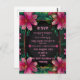 Dieses atemberaubende, blumengeschmückte Design zeichnet sich durch eine lebendige, symmetrische Rosa- und Violettblüte mit üppigem Grün aus. Der schwarze Hintergrund bildet einen perfekten Kontrast zu den lebhaften Farben und eignet sich ideal für Hochzeitsfeiern, rett-the-date-Karten oder andere Hochzeitskunststücke. Das luxuriöse Blumenwerk eignet sich perfekt für eine romantische und moderne Hochzeitsästhetik. Fügen Sie eine persönliche Nachricht oder Details in das Zentrum, um es wirklich einzigartig für Ihren besonderen Tag zu machen.