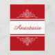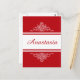 Elegantes Blumendesign mit Namensgebung und Streifen auf rot-weißem Hintergrund