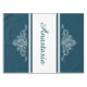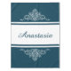 Elegantes Blumendesign mit Namensgebung und Streifen auf blau-weißem Hintergrund