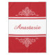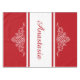 Elegantes Blumendesign mit Namensgebung und Streifen auf rot-weißem Hintergrund