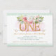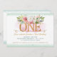 Feiern Sie Ihren ersten Geburtstag mit dieser besonderen Einladung. Verfügt über goldene Buchstaben ONE mit schönen Aquarellfarben-Blume und Grün Ein weißer, geschmolzener Hintergrund rundet dieses elegante Design ab. Einfach mit Ihren Party-Details personalisieren. Auf der Rückseite der Einladung finden Sie Blumenstrauß und weiße Jakobsuntermalung. Design©Rosalind Moore, Cherry Lane Designs.