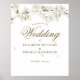 Elegantes florales, hübsches, weißes Blütenzeichen für Hochzeitsfeiern mit zarter Frühlingsblüte, das Ihre Hochzeitsdetails in eleganter Goldschrift umrahmt. Personalisieren Sie Ihre besonderen Veranstaltungsdetails in schicken Goldtexten. Entwickelt von Thisisnotme©