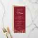 Elegantes, modernes rotes Hochzeitsmenü mit modernem Kalligrafieschrift und goldblühenden Spitzen.