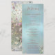 Genießen Sie Ihren Empfang mit unserem eleganten Blumenmenü. Die Speisekarte bietet einen ruhigen, blauen Hintergrund mit zarten Aquarellfarben in sanften Pastelltönen. Passen Sie den Text an, um Ihr sorgfältig kuratiertes Menü zu präsentieren, damit Ihr Schreibgerät Ihren einzigartigen Stil widerspiegelt. Diese Karte ist Teil einer kompletten Sammlung und trägt zu einem zusammenhängenden und atemberaubenden Thema für Ihren Hochzeitstag bei. Ideal für eine Hochzeit im Frühling oder Sommer.