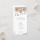 Dieses elegante Hochzeitsmenü-Design besticht durch wunderschöne Herbstblüten mit Pampasgras, getrockneten Blume und Palmspeeren, die mit klassischer Kalligraphie-Typografie fertig gestellt sind. Ein klassisches Hochzeitsmenü, um Ihre Tische schön zu kleiden und Ihr Hochzeitsthema im Herbst zu vervollständigen.