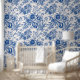 Elegantes Blumenmuster in Blau und Weiß Tapete