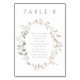 Elegante Blush Blumenreath Hochzeitsdiagramm Tischnummer - bearbeiten Sie Tischnummer und Gästennamen. Zeigen Sie einzelne Karten auf Clips oder Ständen an.