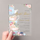 Personalisieren Sie diese schicke Tee-Party-Brautparty-Acryleinladung mit Ihrer eigenen Formulierung einfach und schnell, einfach auf den Knopf anpassen, um den Stil und die Platzierung des Textes weiter zu ordnen und zu formatieren. Die elegante Einladung umfasst eine hübsche Teekanne, Teebecher, schmucke Desserts, schöne, in Aquarelltönen gehaltene Rosen und ein edles Grün und goldenes Blattwerk. Erhältlich in klaren und mattierten Oberflächen. Passende Artikel im Shop erhältlich! c) das Happy Cat Studio.