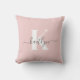 Dieses schlichte, elegante, rosafarbene Kissen mit einem Vornamen in einem trendigen Script-Schriftart in Grau und der erste Einstieg in einen modernen Kappenholz-Schriftart in Weiß ist perfekt für Sie. Es ist stilvoll und trendig und dennoch sehr klassisch. Es wird fantastisch aussehen in Ihrem Schlafzimmer, Wohnzimmer, Aussichtsterrasse, sie vergossen.