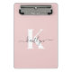 Elegantes Blush Pink Gray Script Monogram Mini Klemmbrett