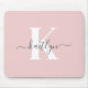 Elegantes Blush Pink Gray Script Monogram Mousepad