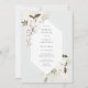 Elegante Bohemische Blumendusche Einladung. Weiße Aquarellfarben und zartes grünes Blattwerk auf schlangengrünen Hintergründen.