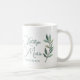 Ein schlicht elegantes, grünes Kalligrafieschrift mit zwei Aquarelleukalyptus-Blätter auf beiden Seiten, um dieses wunderschöne, minimalistische Brautparty der Hochzeit im Herbst zu schmücken. Schöne moderne Abend Hochzeitsjubiläum Tasse mit einem botanischen Blatt.