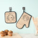 elegantes botanisches Monogramm Hochzeit rustikales Holz Oven Mitt & Pot Holder Set