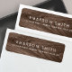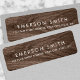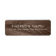 Elegante Rücksendeadressen-Aufkleber mit Namen und Adresse auf braunem Holzkornboden. Besuchen Sie Facebook: @business stationery für mehr Produkte, News, Verkäufe und mehr.