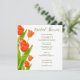 Die elegante Blumen Square Bridal Dusche Die Einladung ist einzigartig mit ihrem quadratischen Design. Korallenrote Tulpen, die an der links Seite liegen, geben eine elegante Aussage ab. Ideal für eine Frühjahrs-Hochzeitsvorbereitung zur Ehrung der Braut zu sein. Fotografie und Design ©Vann-Horn Creative Foto & Designs.