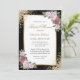 Vervollständigen Sie Ihre Hochzeitsfeier in Schwarz und Schwarz mit den eleganten Brauduschen, die von blütenrosa Blume und Grünpflanzen inspiriert werden. Matching-Elemente verfügbar. Blütendusche aus Blumen. Rosa und schwarze Blumendusche Einladung. Blütendusche, schwarze und goldene Blumendusche.