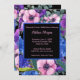 Elegantes Brautparty Blumenblau Lila rosa Einladung . Passen Sie diese Einladung mit Ihren Informationen an. Elegantes Design vor schwarzem Hintergrund. So hübsch und besonders.