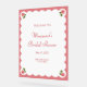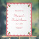 Herzlich willkommen bei Ihren Gästen dieses edle und raffinierte rosa Brautparty. Dieses Design mit hübschen Rosenbuden-Illustrationen in jeder Ecke, einer geschmolzenen weißen Grenze und einem Rose-Rosa-Hintergrund fügt Ihrem Fest einen romantischen Flair hinzu. Die eleganten Serif- und Skript-Schriftart verleihen eine klassische Touch und eignen sich somit hervorragend für Party im Garten, Teesuchduschen oder für alle Veranstaltungen, die Liebe und Schönheit feiern. Personalisieren Sie sich mit dem Namen, dem Datum und der Lage der Braut für ein schönes, individuelles Detail.