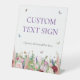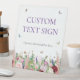 Weiblich und modern, kann dieses Podestschild für Ihr Brautparty angepasst werden. Das Design umfasst einen hübschen Garten mit Aquarellfarben, Rosa und Lila-Blumen, darunter Rose, Tulpen, Lavendel- und Eukalyptuspflanzen mit bunten Schmetterlingen und Hummeln. Sie können alle Text- und Grafikplatzierungsdetails an Ihre spezifischen Anforderungen anpassen.