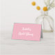 Ein elegantes Hochzeitskleid auf hübschem rosa Hintergrund betont diese gefaltete Platzkarte. Es ist einfach, den Namen und die Tischnummer Ihres Gastes auf diese Karten zu schreiben, wenn Sie sie erhalten. Diese Karten sind Teil der Elegant Wedding Collection in Rosa.