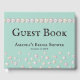 Modern und elegant Das Aquamarine und türkisfarbene Brautparty Gästebuch mit dem Motto "Blue" zeigt Perlen