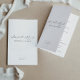 Mit unserem Minimalistischen Elegance Wedding Program bieten wir Ihnen eine perfekte Mischung aus Einfachheit und Eleganz für Ihren besonderen Tag. Dieses gefaltete Programm wurde mit einem scharfen Auge für Details konzipiert und zeichnet sich durch elegante Kalligraphie aus, die sich durch das saubere, knallige Layout elegant durchströmt. Das minimalistische Design sorgt dafür, dass der Schwerpunkt auf dem Wesen Ihrer Zeremonie bleibt und die Reihenfolge des Services in einer schön unterstrichenen Art und Weise umrissen wird. Ideal für Paare, die die Schönheit in der Einfachheit schätzen, wird dieses Hochzeitsprogramm sicher eine raffinierte und unvergessliche Touch zu Ihrer Zeremonie hinzufügen.
