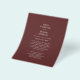 ⭐ HINWEIS: Dies ist eine Option für Flyer mit geringem Budget. SATIN ist die dickere Oberfläche hier, Matt ist wie Papier. Umschläge NICHT enthalten. Für traditionellere Einladungen sehen Sie sich die beigefügte Kollektion an oder übertragen Sie das Design über die Werkzeuge auf Ihrer Produktseite auf 'Einladung'. ⭐ Hochzeitsgegenstand in Rot-Bordeaux, monochrom, mit trendigem Typografie-Stil und vielen Vorlagenfeldern, um Ihr individuelles, einzigartiges Design zu kreieren. Für den Zugang zum kostenlosen LIVE-DESIGNER von Zazzle oder für die Nutzung der TRANSFER-Tools auf der Seite. ⭐ Bitte beachten Sie die beigefügte Sammlung und die "Zusatzprodukte", um die komplette Hochzeitssuite mit diesem Design oder Farbthema zu sehen. Dies kann Einladungen für Hochzeiten und Brautduschen, Probe-Dinner, Bräunungsmittagessen zusammen mit Save the Date, uAwg's, Gefallen-Tags, Aufkleber und vieles mehr. Geeignet für Frühling, Sommer, Herbst, Herbst, Winter Hochzeiten, Innen- oder Outdoor, Berg, See, Scheune, Landschaft, Schloss, Garten, Hinterhof. Tonnen von großartigen Designs und Optionen für alle Budgets. ⭐ Template Design ©LeahG Gründer des LowBudgetWeddingNetwork® Für die Hochzeitsplanung besuchen Sie uns über www.weddingdesignchic.com. Hier erhalten Sie Ideen, wie Sie Ihre perfekte Brauthochzeit planen, kostenlose Hochzeitsschecklisten ausdrucken und einen kostenlosen, druckbaren Hochzeitsplaner herunterladen können.