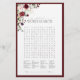 Modernes, elegantes Brautparty-Spiel "Word Search" mit einem Bouquet aus bordeauxroten und blassrosa Blume und botanischem Grün, umgeben von einem reichen burgundischen Rot. Teil einer koordinierten Suite. Suite hier ansehen: https://www.zazzle.com/collections/elegant_burgundy_floral_watercolor_bridal_shower-119280454460170395 Kontakt-Designer für passende Produkte. Copyright Anastasia Surridge für Elegant Invites, alle Rechte vorbehalten.