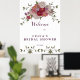 Elegantes Burgundy Floral Brautparty Willkommen Poster