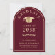 Elegante bogenförmige Bordeaux-Uni-Abschluß-Ankündigung und Party Einladung mit einem goldenen Graduiertencap und schlichter moderner Goldtypografie für den Namen, das Klassenjahr, die Uni oder die Universität, den Abschluss und die Dur- oder Ehrensymbole. Fügen Sie auf der Rückseite die Details zum grad-Party hinzu.